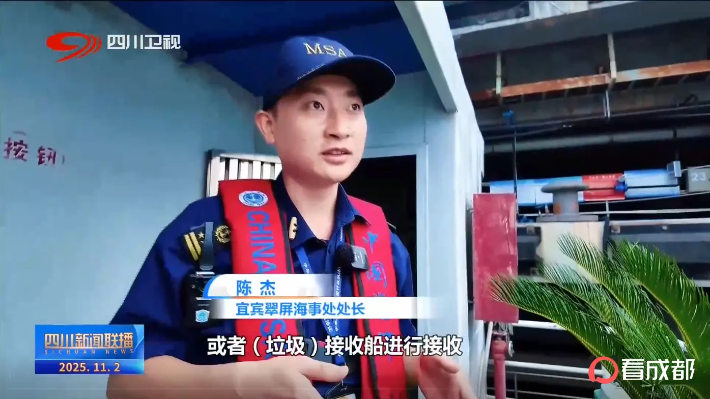 宜宾翠屏海事处处长 陈杰:所有船舶(的垃圾)都是到我们码头或者(垃圾)接收船进行接收,再进行二次转运,全免费的。