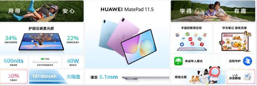 同步发布的华为MatePad 11.5柔光版主打健康护眼,搭载云晰柔光屏与圆偏振光技术,反射率降低60%,并集成AI助学功能,支持解题批改、字迹优化等。智能穿戴领域,华为WATCH十周年款推出“健康仪表盘”表盘,一屏集成12项生理指标;WATCH GT 6新增冰雪蓝配色,升级滑雪运动数据记录能力。