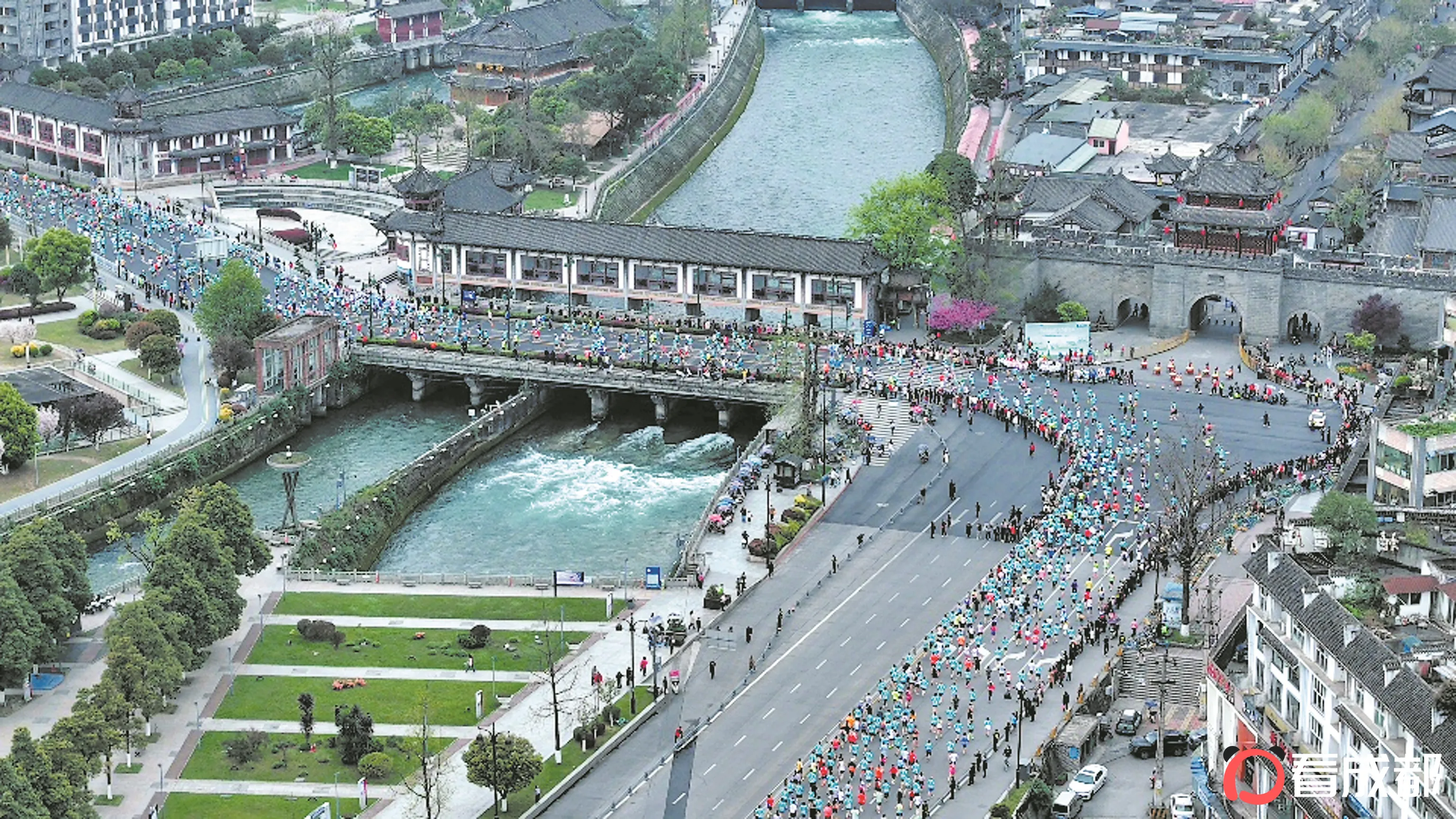 本届赛事以“珍水万世堰 跑进春天里”为主题,串联都江堰千年古迹与烂漫春日风光,沿途海棠绽放、樱花纷飞,三大世界遗产一路相伴。