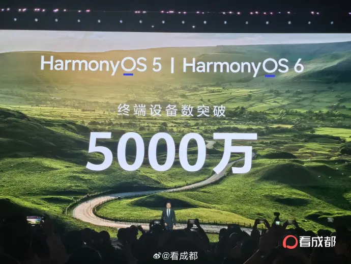 同时,华为终端BG CEO何刚在现场宣布,截至2026年3月22日,搭载HarmonyOS 5及HarmonyOS 6的终端设备数突破5000万,日均新增设备数超15万,可获取应用/服务数量超35万。鸿蒙生态体验加速成熟,迎里程碑式发展。